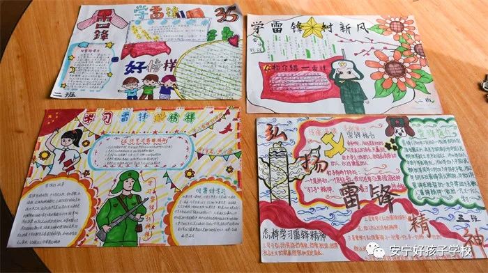 一張張手抄報主題鮮明,內(nèi)容豐富多彩,板式新穎多樣,字跡工整清晰,充分展示了孩子們對“雷鋒精神”的所思所想、所感所悟。