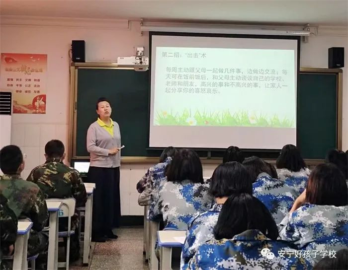 趁著孩子們反思自己、體諒父母的時機,王老師順勢引入與父母溝通的小妙招:讀心術(shù)、出擊術(shù)、責(zé)任術(shù)、道歉術(shù)、寫信術(shù)、協(xié)議術(shù)、傾聽術(shù)等。簡單的小技巧涵蓋了日常親子溝通中常見問題的多個方面,為那些不知道如何表達自己、如何找到正確溝通時機的孩子們提供了很好的參考與示范。