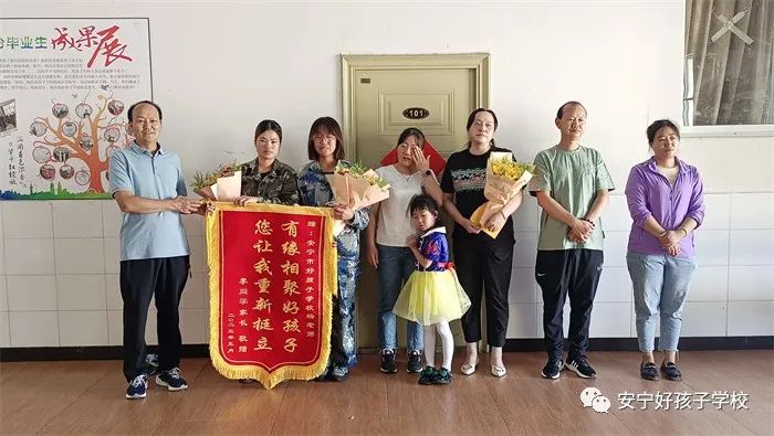 潤物無聲,感恩有聲。為表達謝意,小李同學的父母將一面繡有“有緣相聚好孩子,您讓我重新挺立”字樣的錦旗贈給學校和孩子的班主任楊老師,以此感謝學校和老師對孩子的辛勤培育。