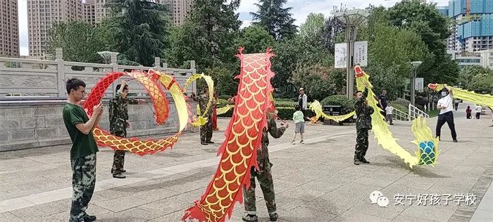舞獅體驗結束后孩子們驚奇地發(fā)現(xiàn),舞獅和舞龍有異曲同工之妙,而且相對于舞獅,舞龍更加容易,一個人就可以完成。于是許多孩子手持“祥龍”,迎風起舞,步步生風。頓時,場上“龍騰獅躍”,讓人無比振奮。