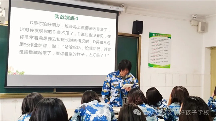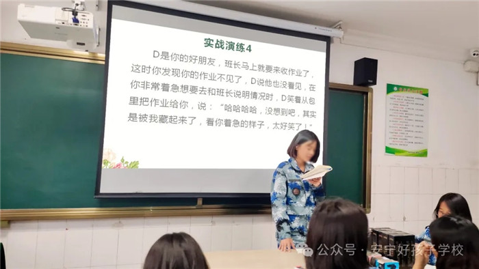 緊接著,張老師首先讓孩子們理解“和而不同”的內(nèi)涵,讓孩子們明白在人與人的相處中,既應(yīng)當(dāng)尊重他人的需求與愿望,同時也要堅守個人的界限與原則,清晰界定個人的能力范圍與心理舒適區(qū),避免過度犧牲自我導(dǎo)致的疲憊與不滿。然后通過“如何在拒絕中實踐‘和而不同’案例”,給孩子們傳授了“拒絕寶典”的精髓。