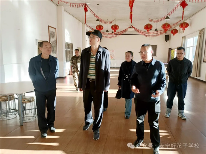 李主任一行在學校執(zhí)行校長尹斌的陪同下,參觀了學校辦公樓、教學樓、宿舍樓等校園環(huán)境,并重點查看了學校法治教育宣傳陣地和心理輔導工作開展情況。隨后在多媒體教室觀看了學校教學活動短片。其間,尹校長向李主任匯報了學校的辦學理念、發(fā)展歷程、辦學特色、安全管理、辦學成績,以及面臨的困難與挑戰(zhàn)等。