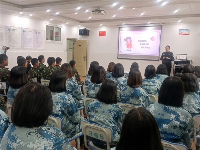 活動伊始,林警官以《和諧校園—反校園暴力》為主題為師生們帶來一場精彩的法治講座。林警官結(jié)合身邊的真實案例,將晦澀的法律條文轉(zhuǎn)化為一個個鮮活的故事,以專業(yè)生動的講解,深入剖析校園欺凌、校園暴力的成因、表現(xiàn)形式以及危害,教育引導同學們學會保護自己,堅決杜絕校園欺凌、校園暴力。其間,林警官與同學們開展有獎知識問答,讓同學們在答題過程中進一步強化法律知識,更好地踐行“知法、學法、守法、護法”的行為準則,做一個健康陽光的青少年。
