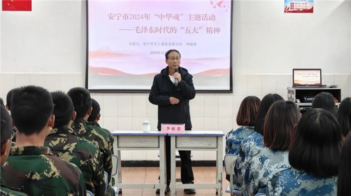 普法講座結(jié)束,李主任為大家進行了毛澤東時代的“五大”精神——“中華魂”主題教育宣講。李主任深情回顧了毛澤東時代的光輝歷程,闡述了“五大”精神的深刻內(nèi)涵和時代價值。他強調(diào),新時代青少年要繼承和發(fā)揚“五大”精神,堅定理想信念,勇于擔當作為,為實現(xiàn)中華民族偉大復(fù)興的中國夢貢獻青春力量。