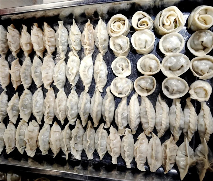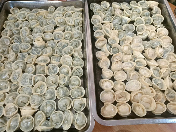 多功能食堂里,燈光溫暖,人影忙碌,氣氛熱烈,歡聲笑語交織,大家都在熱火朝天地為包餃子做準(zhǔn)備。餃子餡的種類豐富多樣,韭菜的清香、芹菜的爽脆、肉餡的醇厚,每一種餡料都在撩動著大家的味蕾。