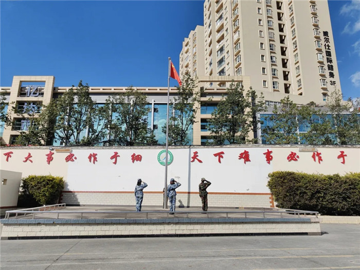 下午三點(diǎn),同學(xué)們軍容嚴(yán)整、英姿颯爽、斗志昂揚(yáng),集結(jié)在操場(chǎng)等待檢閱。在雄壯的國歌聲中,鮮艷的五星紅旗冉冉升起,匯報(bào)表演正式拉開帷幕。