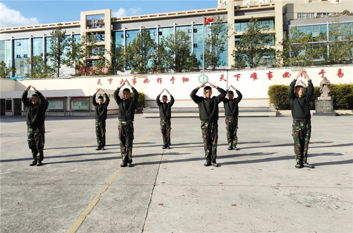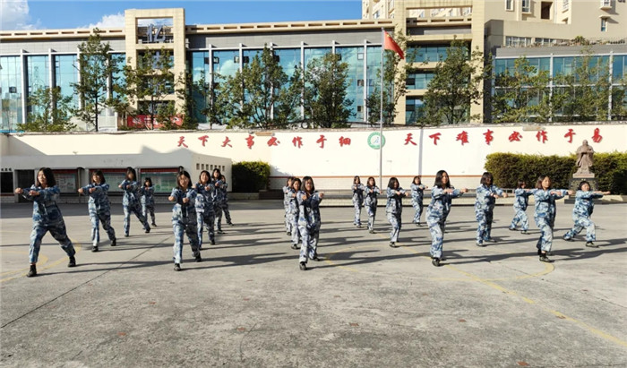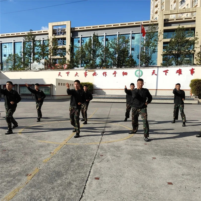 其間,三個(gè)方隊(duì)穿插表演的《擒敵拳》氣貫長(zhǎng)虹。男生們剛勁有力,步伐穩(wěn)健,毫不拖泥帶水,看得人熱血沸騰;女生們英姿颯爽,意氣風(fēng)發(fā),每一招都虎虎生風(fēng),盡顯英勇之姿。整個(gè)表演過程中,每個(gè)方隊(duì)成員們配合默契,動(dòng)作整齊劃一,每一個(gè)抬手、每一個(gè)踢腿都充滿力量,彰顯著他們平日里刻苦訓(xùn)練的成果。