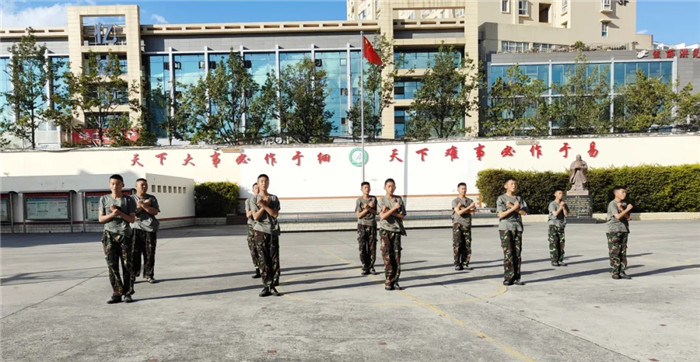 首先,進(jìn)行的是基本隊(duì)列表演!吧韵ⅲ×⒄......”隨著指揮員的口令,同學(xué)們按規(guī)定完成了停止間轉(zhuǎn)法、齊正步行進(jìn)與立定、敬禮與禮畢等一至八個(gè)訓(xùn)練科目,每個(gè)動(dòng)作都令行禁止,整齊的臂線、鏗鏘的步伐、嘹亮的口號(hào),無不展現(xiàn)了同學(xué)們“站、立、行”的隊(duì)列規(guī)范和良好的精神風(fēng)貌。