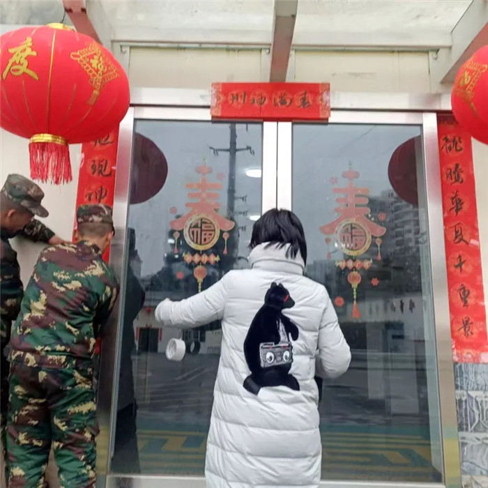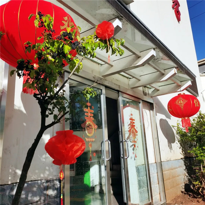 校園的窗戶上貼滿了各式各樣的窗花,辦公樓、教學(xué)樓、食堂的門上張貼著精美的春聯(lián)和福字,這些春聯(lián)和福字都是由師生們親手書寫的,一筆一劃都飽含著對新年的美好祝福。多功能室也煥然一新,天花板和外面均懸掛著一排排紅燈籠,宛如燃燒的火焰,熱烈而喜慶。室內(nèi),師生們一起用氣球、彩帶等裝飾物品將其布置得溫馨而富有節(jié)日氛圍。