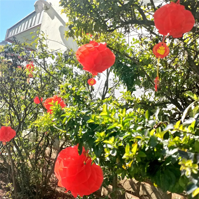 校園各處張燈結(jié)彩,喜氣洋洋。走進(jìn)校園,首先映入眼簾的是校門兩側(cè)高高掛起的大紅燈籠,鮮艷的紅色為校園增添了喜慶的氣息。辦公樓前的樹木,掛著紅彤彤的小燈籠,如同熟透的