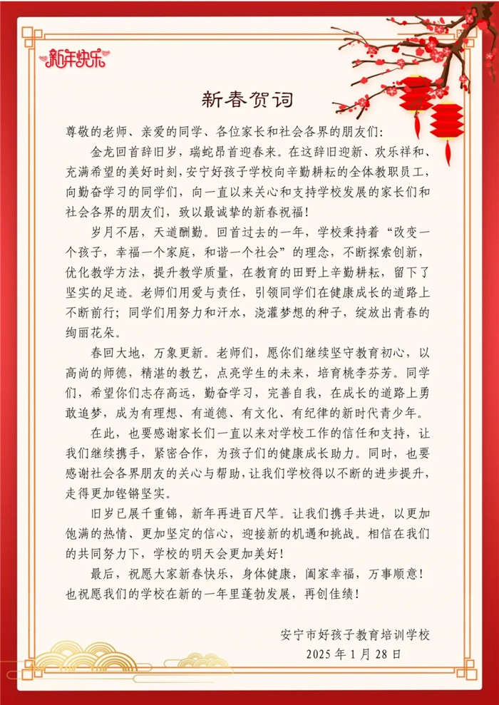 溫馨除夕夜·學(xué)校暖如家——記好孩子學(xué)校2025年溫馨除夕夜