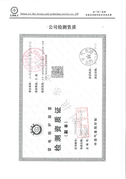 2019年6月26日,為有效預防和遏制雷電災害事故的發(fā)生,我校特委托云南雷寶科技服務有限公司對我校的辦公樓、教學樓、食堂等各建(構)筑物、供配電系統(tǒng)、設備設施及各裝置安裝的防雷設施進行全面檢測,以及對“防直擊雷裝置”、“防閃電感應裝置”、“電涌保護”、“等電位連接”等防雷裝置進行安全評估,共對24個防雷測試點進行了接地性能參數(shù)檢測。經(jīng)檢查,各項指標均符合國家現(xiàn)行防雷規(guī)范的要求與指標,并向我校出具了書面檢測報告。
