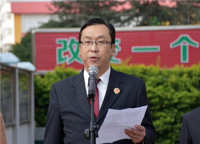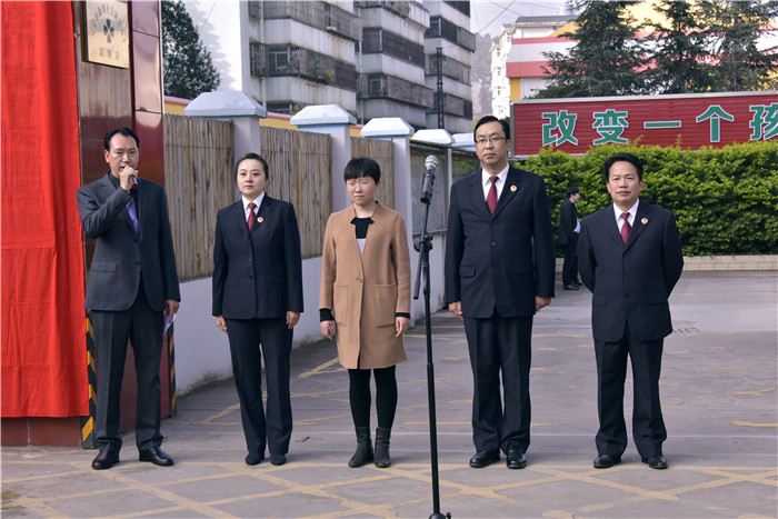 揭牌儀式上,魯校長介紹了出席活動的領(lǐng)導(dǎo)并致歡迎詞;隨后邀請了楊志剛檢察長與盧敏副局長為學(xué)校揭牌,全場響起熱烈的掌聲;隨后,楊檢察長發(fā)表了熱情洋溢的講話:“今天很高興!安寧市人民檢察院與好孩子學(xué)校7月簽訂的《未成年人陪護(hù)教育基地共建協(xié)議》,今天終于落地揭牌了。檢校合作,是深入貫徹習(xí)近平總書記新時(shí)代中國特色社會主義思想的重要舉措;是落實(shí)中央《關(guān)于加強(qiáng)專門學(xué)校和專門教育工作意見》的具體體現(xiàn);是促進(jìn)未成年權(quán)益保護(hù)和犯罪預(yù)防體系建設(shè)的有益嘗試;更是促進(jìn)未成年人健康成長的有力保障。專業(yè)的人做專業(yè)的事,好孩子學(xué)校辦學(xué)成績顯著,我們給予高度肯定!感謝好孩子學(xué)校對我市未檢工作和未成年人權(quán)益保護(hù)做出的重大貢獻(xiàn)。我們相信,基地的建設(shè),對引導(dǎo)我市廣大青少年樹立法治理念,減少違法犯罪和維護(hù)自身合法權(quán)益都具有極其重要的里程碑意義。做好未成年犯罪預(yù)防、幫扶,使命光榮,任務(wù)艱巨。今天的儀式只是個(gè)開頭,希望我們能夠以此為契機(jī),在接下來的工作中,本著共建共贏的合作原則,充分發(fā)揮雙方的資源優(yōu)勢,努力把合作引向深入,確;匕l(fā)揮實(shí)效,為未成年人的健康成長創(chuàng)造良好的社會環(huán)境,為建設(shè)平安安寧作出更大貢獻(xiàn)!”